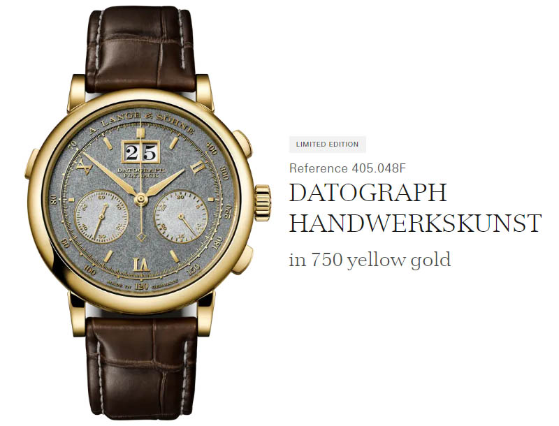 Tras el relanzamiento de la marca, A. Lange & Söhne presentó hace 25 años el Datograph, un hito en la relojería de precisión. En el último modelo, la alianza única entre complejidad técnica y diseño expresivo se enriquece con otros elementos excepcionales, creados de forma artesanal. La edición limitada Handwerkskunst cuenta con decoraciones de esfera y movimientos poco comunes y extremadamente sofisticados.
