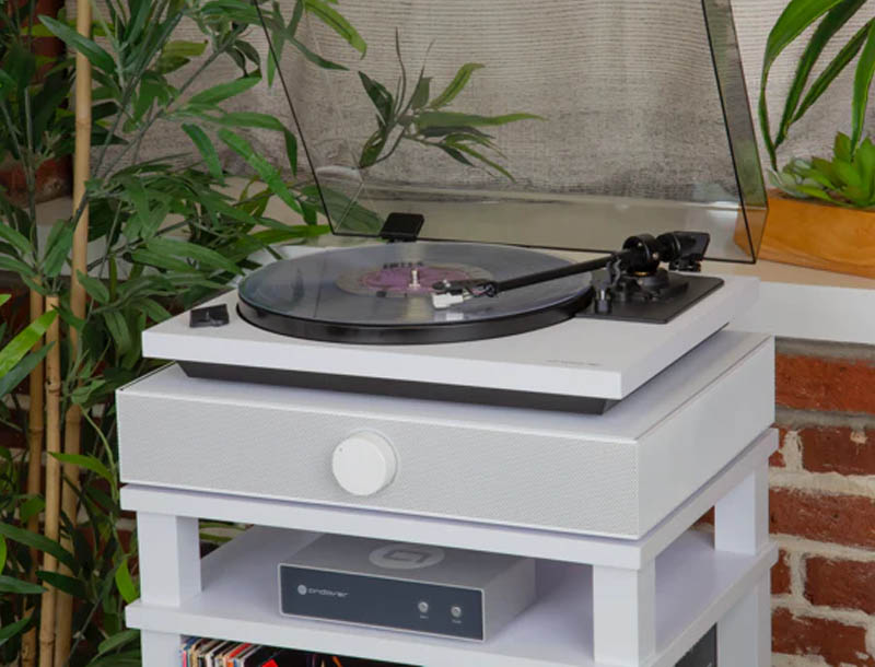 El robusto zócalo de MDF, disponible en blanco o negro, y los pies aislantes de vibración de goma suave brindan una estabilidad sólida para una reproducción sin saltos.