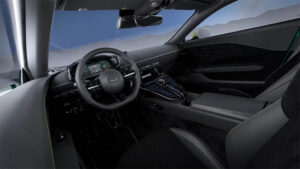 El tema de la exclusividad continúa dentro del automóvil con una placa en el umbral con un logotipo exclusivo de Vantage AMV24 Edition, diseñado por Q by Aston Martin, un bordado en el reposacabezas a juego, un paquete de joyas de cromo oscuro y costuras contrastantes en AMR Lime en los asientos ventilados en negro que brindan un interior, experiencia que recuerda al auto de carreras Aston Martin Vantage GT3, que se lanzó junto con el nuevo auto deportivo Vantage y el retador AMR24 F1 en el famoso circuito de carreras de Silverstone en febrero de este año.