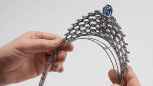 Continuando con la gran tradición de transformación de Cartier, este collar de Alta Joyería se convierte en una tiara, a través de un savoir-faire que combina elementos arquitectónicos y articulados.