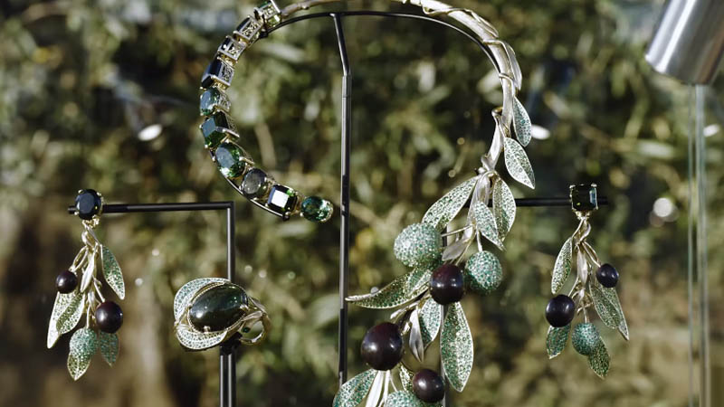Desenterrando la magia de las esculturas vivientes en las áridas colinas de Val D’Itria están los majestuosos olivos entrelazados con troncos antiguos que sirven de inspiración para la primera pieza. Meticulosamente elaborado en oro, adornado con esmeraldas y tsavoritas, captura el encanto del oro líquido.