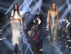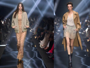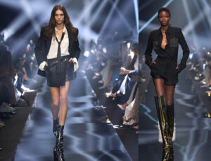 Una colección dedicada a la música industrial de los años 80 y 90 que experimenta y se inspira en la banda de rock que, aún hoy, después de más de 40 años, sigue siendo única en el escenario mundial y convierte su música en arte: Depeche Mode. se transforma en un concierto estético caracterizado por volúmenes contrastantes, prendas de siluetas limpias y cortes minimalistas, y proporciones que oscilan entre oversize y superfit. Microshorts y minivestidos se alternan con nuevas interpretaciones rockeras de atuendos de alfombra roja combinados con botas de motociclista. La paleta se caracteriza por un predominio de colores neutros como el gris, el negro y el blanco, salpicados de matices como el cedro y el plateado. Los colores metálicos evocan el escenario, las guitarras y el backstage, impartiendo una sensualidad extrema que irrumpe y llena el espacio.