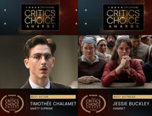 “One Battle After Another” ganó Mejor Película, mientras que “Frankenstein” y “Sinners” obtuvieron la mayor cantidad de victorias en las categorías de películas, con ambas películas llevándose a casa cuatro trofeos cada una. “Frankenstein” ganó Mejor Actor de Reparto para Jacob Elordi, Mejor Diseño de Producción para Tamara Deverell y Shane Vieau, Mejor Diseño de Vestuario para Kate Hawley y Mejor Peluquería y Maquillaje para Mike Hill, Jordan Samuel y Cliona Furey. “Sinners” ganó Mejor Actor/Actriz Joven para Miles Caton, Mejor Guion Original para Ryan Coogler, Mejor Reparto y Elenco para Francine Maisler y Mejor Banda Sonora para Ludwig Göransson. Además de Mejor Película, el cineasta de “One Battle After Another”, Paul Thomas Anderson, se llevó a casa los trofeos de Mejor Director y Mejor Guion Adaptado.