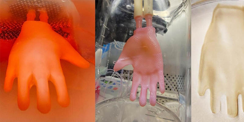 El proceso de creación de nuevos injertos de piel comienza con un escaneo láser 3D de la estructura objetivo, como una mano humana. A continuación, se elabora un modelo hueco y permeable de la mano utilizando diseño asistido por computadora e impresión 3D. Luego, el exterior del modelo se siembra con fibroblastos de piel, que generan el tejido conectivo de la piel y colágeno (una proteína estructural). Finalmente, el exterior del molde se cubre con una mezcla de queratinocitos (células que comprenden la mayor parte de la capa externa de la piel o epidermis) y el interior se perfunde con medios de crecimiento, que sostienen y nutren el injerto en desarrollo.