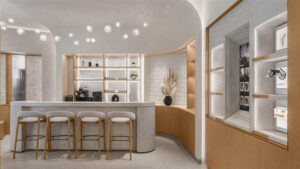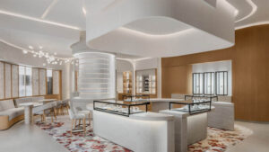 Dentro de la boutique, las referencias a la belleza natural del Vallée de Joux incluyen materiales orgánicos, colores claros y naturales y diseños de alfombras inspirados en árboles, rocas y minerales. El efecto general es aireado, cálido y acogedor, invitando a los visitantes no sólo a descubrir los relojes de Jaeger-LeCoultre sino también a explorar el mundo entero de La Grande Maison. La decoración también incorpora sutiles guiños al Art Déco, un lenguaje de diseño cercano al corazón de Jaeger-LeCoultre, ya que representa el origen del Reverso.