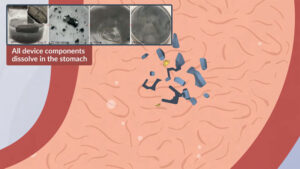 Para minimizar el riesgo de obstrucción del tracto gastrointestinal, el equipo del MIT decidió crear un sistema de radiofrecuencia biorreabsorbible, es decir, que el cuerpo puede descomponerlo y absorberlo. La antena que emite la señal de radiofrecuencia está hecha de zinc y está incrustada en una partícula de celulosa.