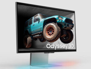 Samsung también exhibe en CES el monitor para juegos Odyssey 3D de 27” (modelo G90XF). Gracias a su lente lenticular adherida al frente del panel y a su cámara estéreo frontal, el Odyssey 3D brinda una experiencia 3D personalizable sin la necesidad de usar anteojos 3D separados. También puede agregar una nueva profundidad al contenido al usar IA para analizar y convertir videos 2D en 3D.
