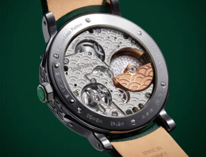 Nube del Dragón: Impulsado por el calibre LFT023, este fascinante reloj representa un majestuoso dragón deslizándose entre las nubes en el corazón de su encantador diseño de esfera. Como escenario, la rara técnica de damasquinado de la artesana Fanny Queloz refleja el hábitat tradicional del dragón, mientras que los intrincados grabados resaltan al animal legendario con acabados pulidos y mate contrastantes. Al darle vida a la criatura, la icónica Flor Monograma de la Maison se reinventa a través de las escamas del dragón, ilustradas en esmalte paillonné.