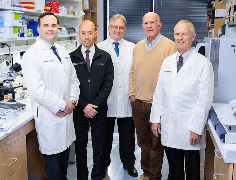 El Dr. Brugarolas probó ratones trasplantados con cánceres de riñón humanos y determinó que el fármaco era eficaz contra los tumores. Kevin Courtney, MD, Ph.D., profesor asociado de medicina interna y presidente del Comité de Monitoreo y Revisión de Protocolos del Simmons Cancer Center, llevó a cabo el primer ensayo clínico de un inhibidor de HIF-2α y descubrió que el fármaco es bien tolerado y eficaz entre pacientes con cáncer de riñón. Más de la mitad de los participantes vieron que su cáncer retrocedía o se estabilizaba con el fármaco. Dres. Brugarolas y Courtney establecieron entonces que HIF-2α es una dependencia central de muchos tumores de riñón.