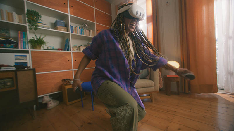 En Quest 3, la tecnología Meta Reality permite combinar el mundo físico con el virtual. Estas nuevas experiencias van más allá de la realidad mixta actual al comprender y responder inteligentemente a los objetos en su espacio físico y permitirle navegar por ese espacio de formas naturales e intuitivas que antes eran casi imposibles. La transferencia de color de alta fidelidad, el aprendizaje automático innovador y la comprensión espacial le permiten interactuar con el contenido virtual y el mundo físico simultáneamente, creando posibilidades ilimitadas para explorar. Ahora puedes jugar un juego de mesa virtual en la mesa de tu cocina con Demeo, decorar tu sala de estar con arte virtual cortesía de Painting VR, o sumérgete en un mundo completamente inmersivo para hacer cosas que simplemente no serían posibles de otra manera. La decisión es tuya.
