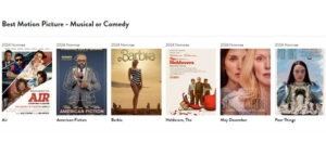 Otras películas que obtuvieron múltiples nominaciones fueron “Killers of the Flower Moon” de Apple y “Poor Things” de Searchlight (siete cada una) y “Past Lives” de A24, con cinco.