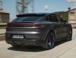 El nuevo Cayenne Turbo E-Hybrid Coupé con paquete GT marca una pauta aún más deportiva. Aporta a la gama de modelos híbridos características de rendimiento seleccionadas del Cayenne Turbo GT, el modelo de rendimiento centrado en la carretera que ya no se ofrece en algunos mercados. Todos los sistemas de chasis y control, incluida la suspensión neumática, se han ajustado específicamente para el nuevo modelo. La carrocería es 10 milímetros más baja. Los amortiguadores de pivote específicos para GT aumentan la caída del eje delantero en -0,58 grados y, en combinación con las ruedas delanteras más anchas, permiten una respuesta de la dirección aún más dinámica en las curvas, una mayor precisión general de la dirección y un agarre en las curvas notablemente mejorado. El paquete GT también incluye de serie el freno cerámico Porsche Ceramic Composite Brake (PCCB) de altas prestaciones. Las cualidades dinámicas del Cayenne Turbo E-Hybrid Coupé pueden mejorarse aún más con neumáticos de altas prestaciones para las llantas GT Design de 22 pulgadas de serie, PDCC y dirección en el eje trasero.